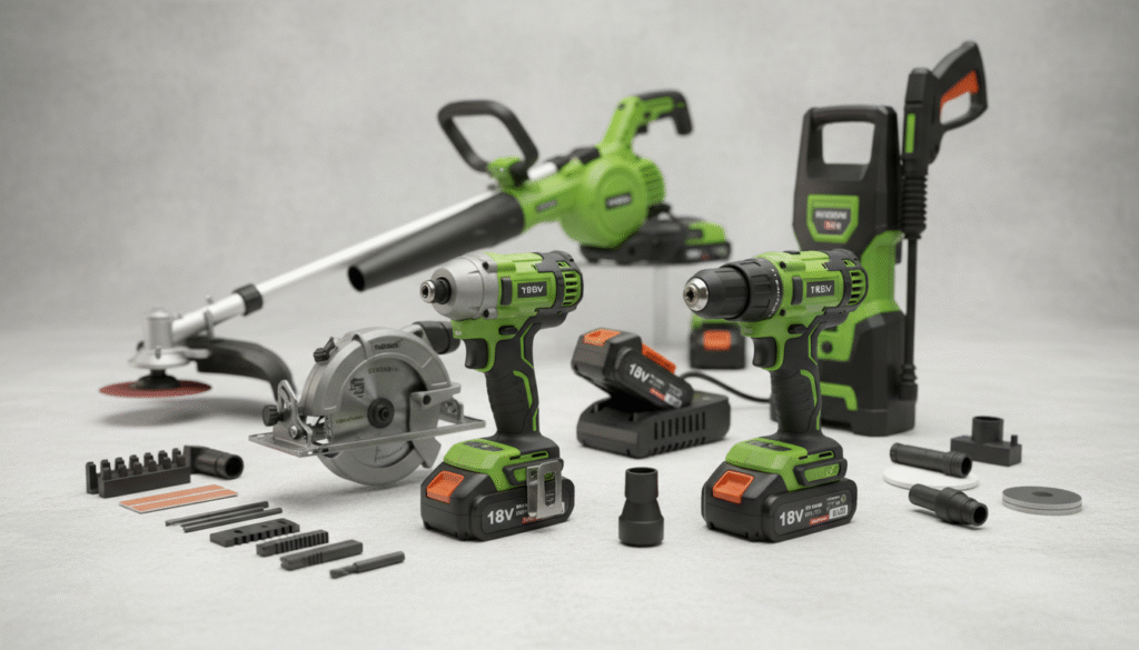 Ryobi's category centers on cordless tools and outdoor power gear built around the 18V ONE+ ecosystem. It spans drills, impact drivers, circular saws, jigsaws, sanders, oscillating tools, grinders, routers, and a wide range of garden equipment—from trimmers to leaf blowers and pressure washers. Battery sharing across tools helps keep kits simple and light, while brushless motors are common for longer runtimes and durability.
